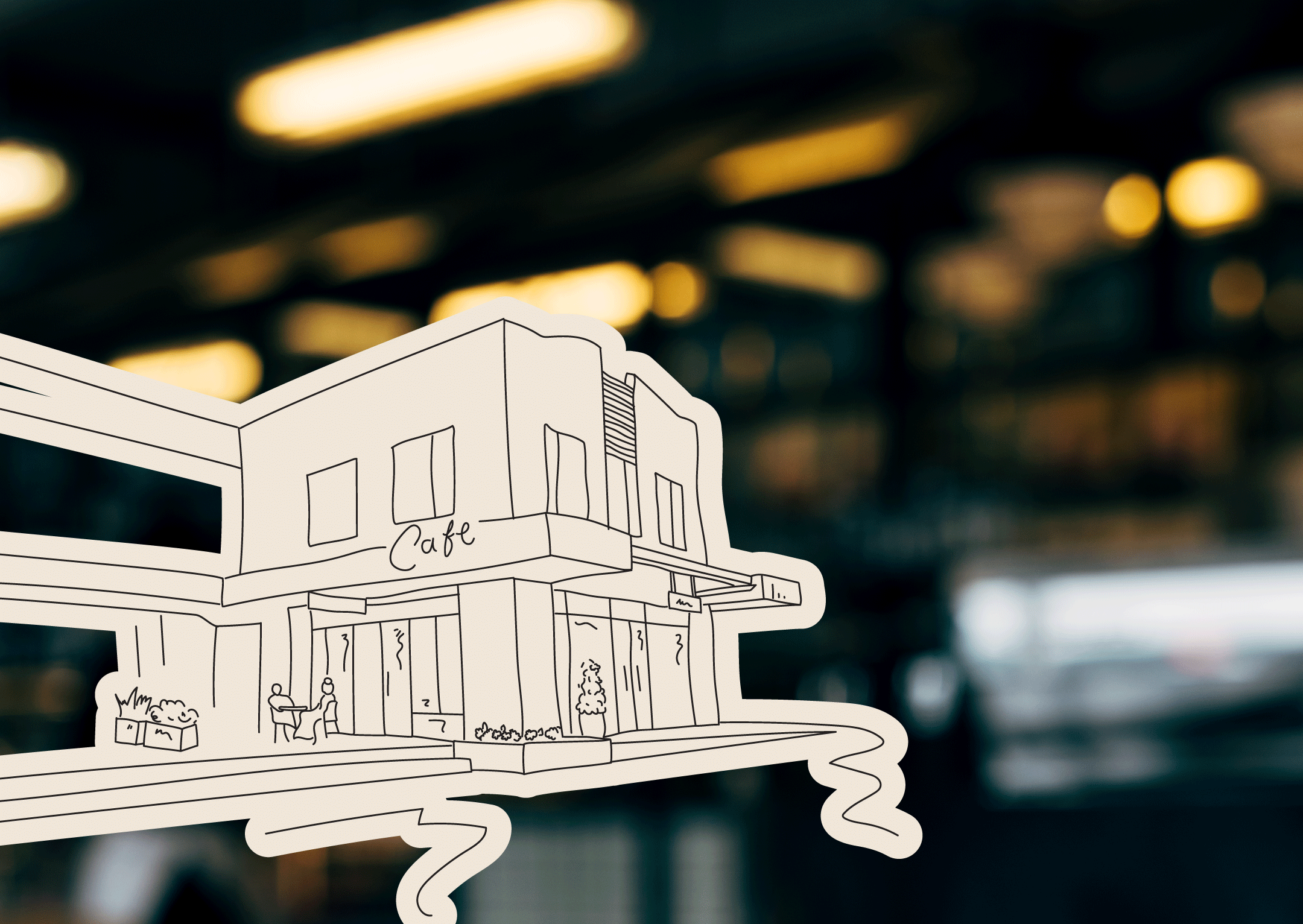A hand-drawn illustration of the café, created from an on-site photograph, anchors the brand firmly in place. Its softened line work reflects the warmth and honesty of Common Ground —recognisable, welcoming, and deeply local.
